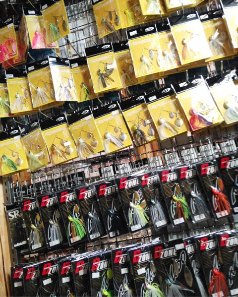 A lot of colorful Spinner baits are available at our shop.