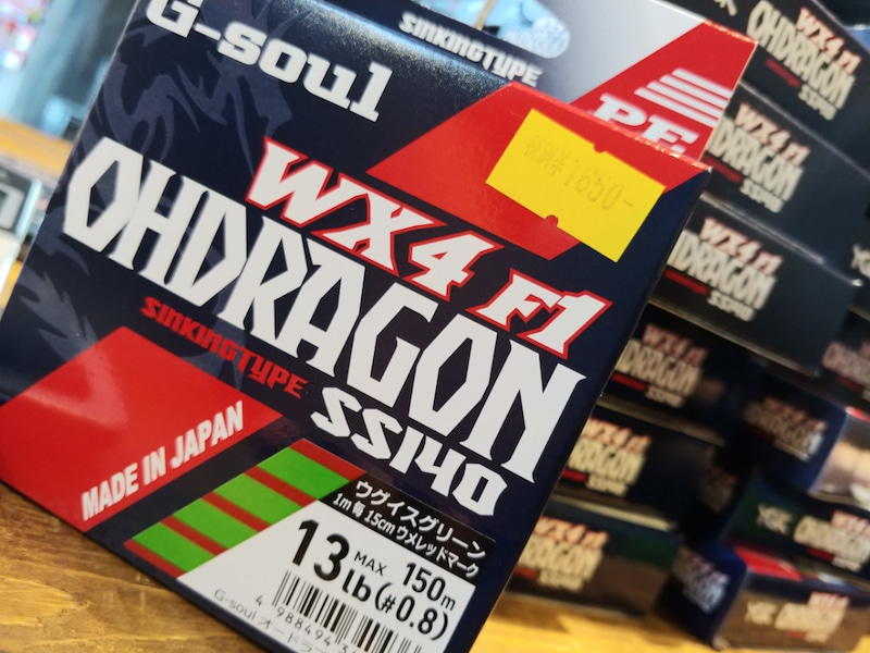 YGK / G-Soul OHDRAGON WX4 F1 SS140 is a sinking braided line.It offers a specific gravity of 1.40, which means it is less slack in windy conditionsand has a quicker rate of fall.It features markings every 1 m, providing a more accurate judgement of depth and has an impressive strength, seamless castability, and versatile performance.