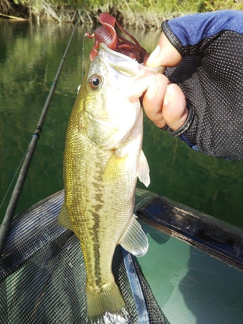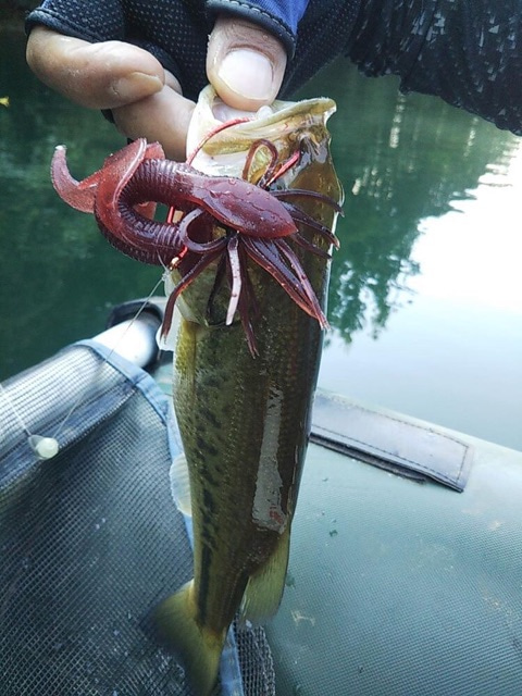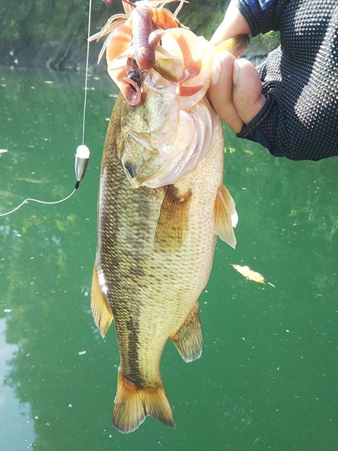 I caught about 10 largemouth bass on KREATURE WORM(Back Lash Special Color # COKE) .Most of the bites were at the mid-depth range.Largemouth bass tend to be deeper in early autumn but they move up and down to different water depth in search of food.