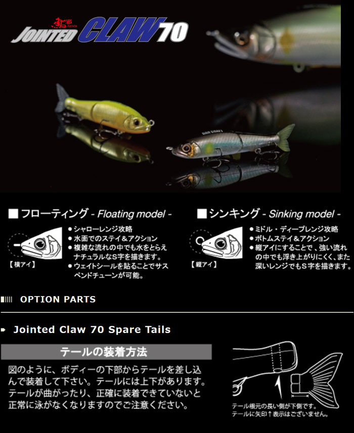 * Spare tails for JOINTED CLAW 70 are also available.