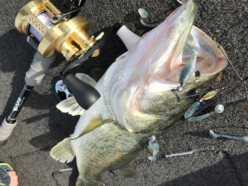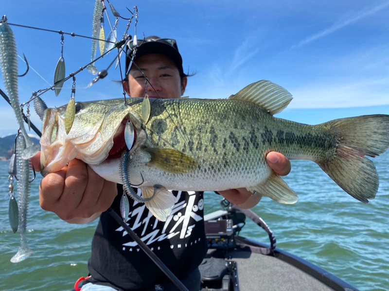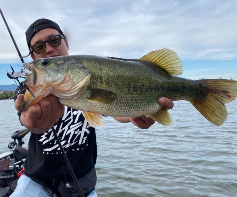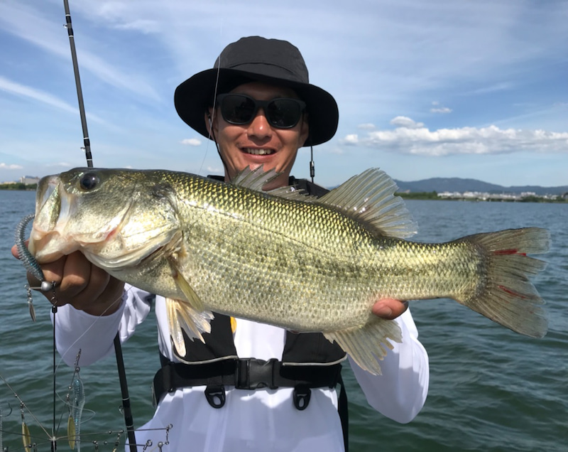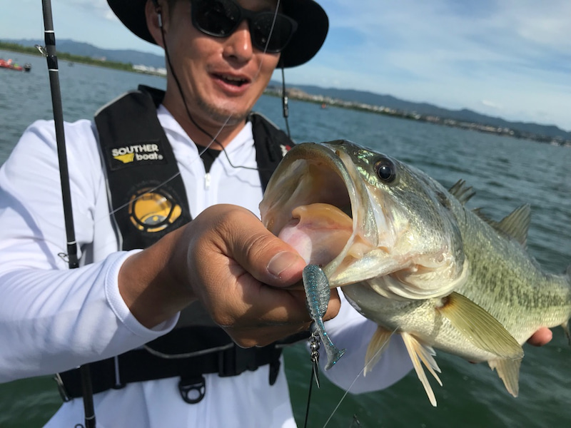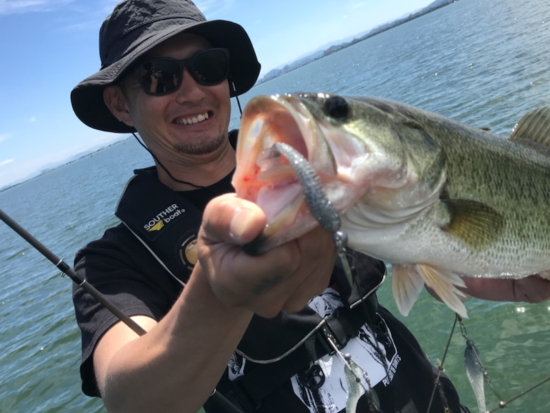 Many field reports said that Geecrack / STEALTH7 have been really effective for fishing Lake Biwa lately.So, we cast it, and soon we had bites and caught nice largemouth bass.