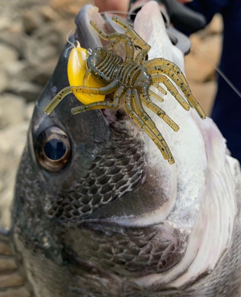 A Japanese pro angler Geki Yoshida has been successful catching summer bass on BIG SPIDER MICRO(Drop shot rig).