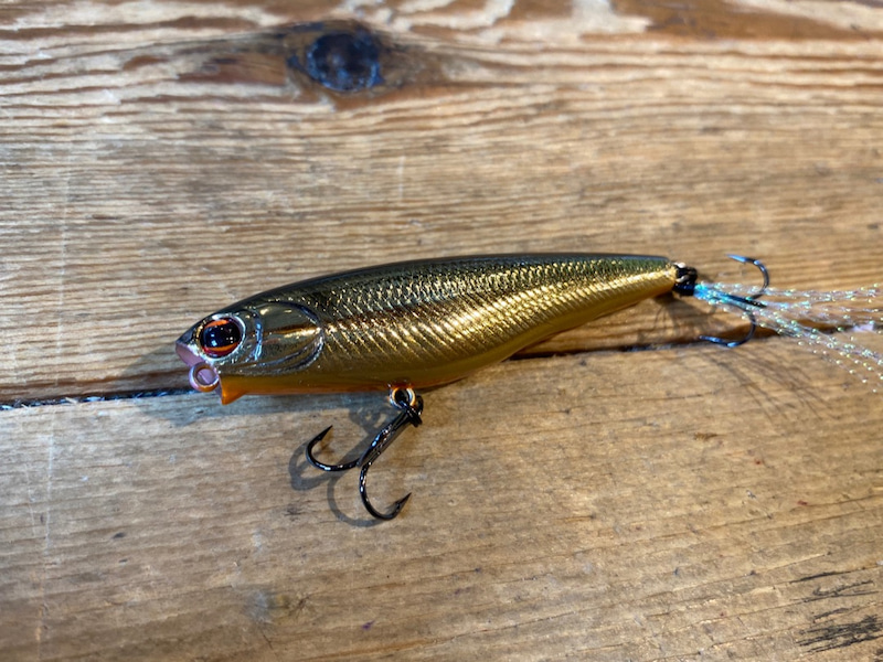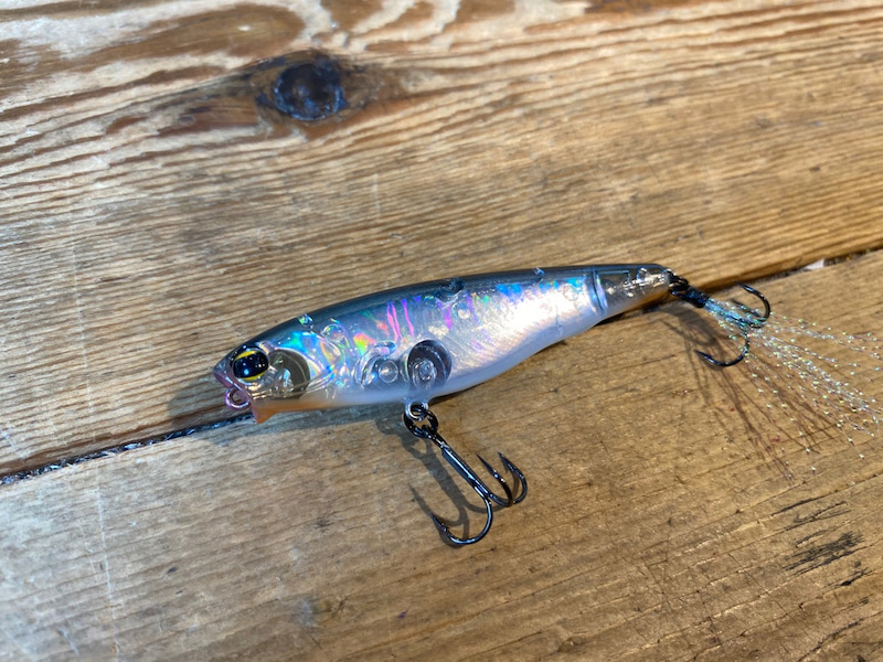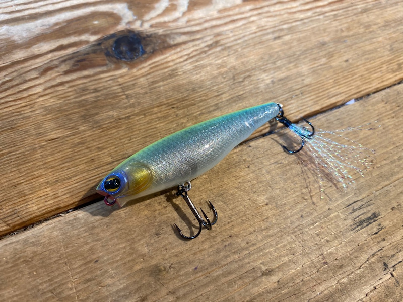 Dilemma POPPER is an ultra-small pencil popper. It features a small body but you can cast it a far distance.It creates a sound which mimics the sound of a fleeing baitfish.