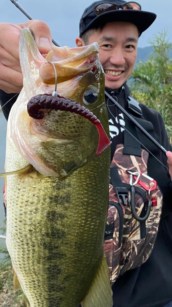 Awesome!! He caught nice bass in Gosan river!! It was over 50cm long and 2kg in weight!!! The lure he used was Geecrack / IRON SHAD # SCUPPERNONG + Weighted hook.